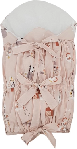 Rożek z linii Premium łączy elegancki design My Farm w delikatnym, pudroworóżowym odcieniu z przemyślaną funkcjonalnością. Wiązane zapięcie umożliwia precyzyjne dopasowanie do potrzeb dziecka i stabilne otulenie. Wyjmowana wkładka kokosowa zapewnia sztywniejsze wsparcie dla pewniejszego chwytu i bezpieczniejszej manipulacji z noworodkiem.