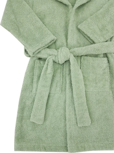 Ten szlafrok w oliwkowozielonym kolorze jest idealny po kąpieli, na basen i do porannego leniuchowania. Miękkie frotte z 100% bawełny jest przyjemne dla dziecięcej skóry i zapewnia szybkie wysuszenie oraz niezawodne ciepło.