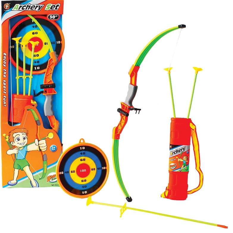 łuk, 3 strzały z przyssawkami, tarcza