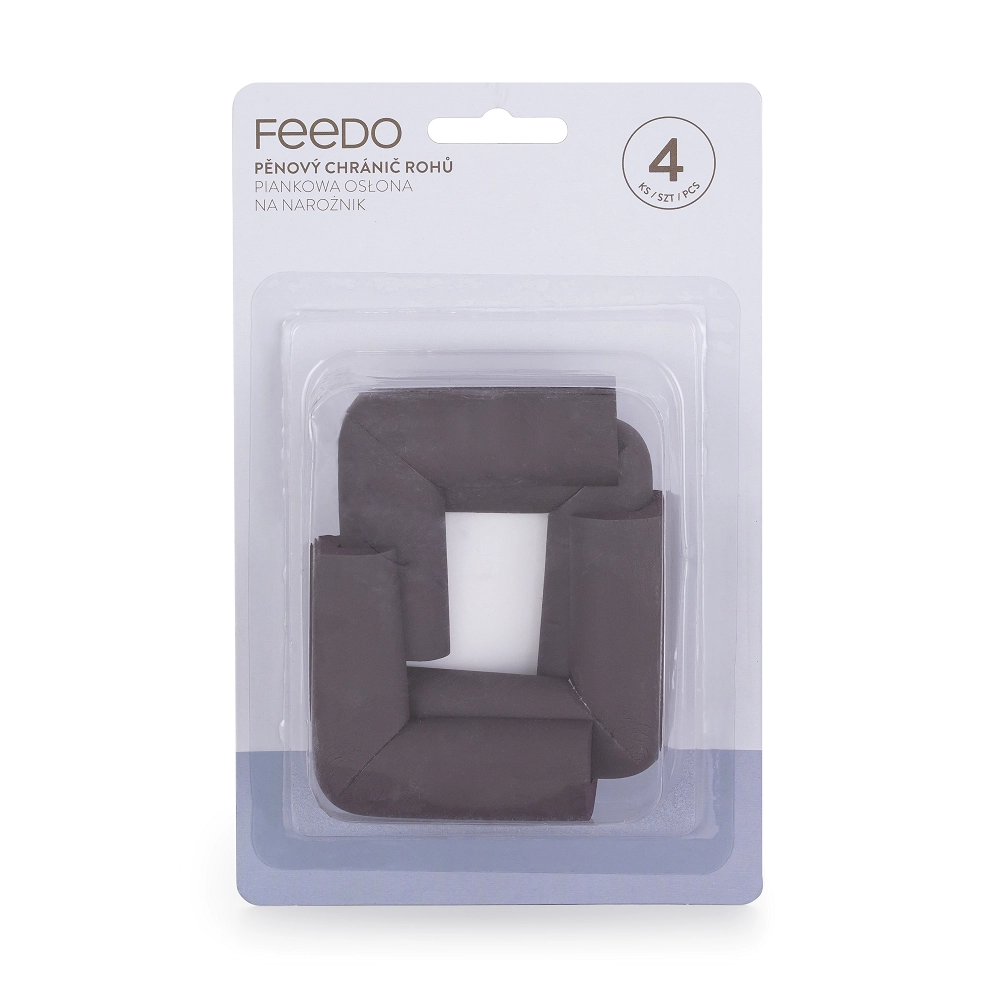 Bezpieczeństwo dzieci na pierwszym miejscu – miękkie piankowe osłony narożników Feedo pomagają zapobiegać bolesnym uderzeniom o ostre krawędzie mebli. Dzięki brązowemu wykończeniu świetnie komponują się z ciemniejszymi powierzchniami i nie zaburzają wyglądu wnętrza.