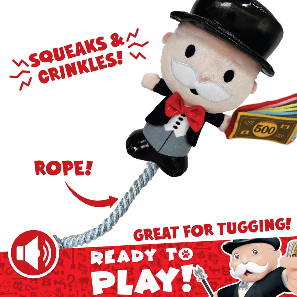 Ikoniczna postać ucieszy miłośników gry MONOPOLY i doda psiej zabawie stylowego charakteru.
