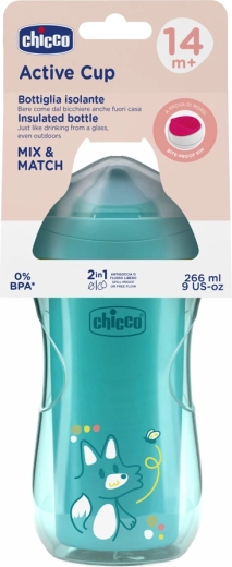 Chicco Active to wytrzymały kubek termiczny zaprojektowany dla dzieci od 14 miesięcy, które uczą się samodzielnie pić. Cienki, twardy ustnik z solidną krawędzią ułatwia przejście do picia jak ze szklanki, a niezawodny zawór ogranicza przeciekanie podczas picia i w ruchu. Ergonomiczny kształt dobrze leży nawet w drobnych rączkach.