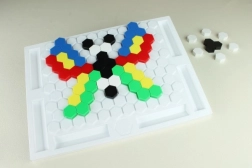 Klocki mozaikowe Pszczoła zdobi ul to nie tylko zabawka, ale także świetna pomoc edukacyjna dla przedszkolaków. Rozwijają motorykę i uczą alfabetu lub podstaw liczenia.