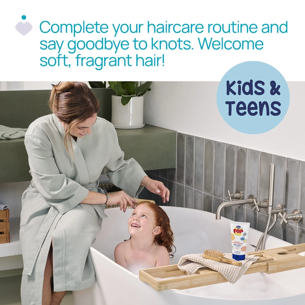 Odżywka do włosów Chicco Pop Vanilla została stworzona dla dzieci i nastolatków, aby mycie i stylizacja włosów były bezproblemowe i przyjemne. Lekka konsystencja z ekstraktem z wanilii nadaje włosom miękkość i przyjemny zapach, a składniki pielęgnujące wygładzają je i minimalizują kołtunienie.