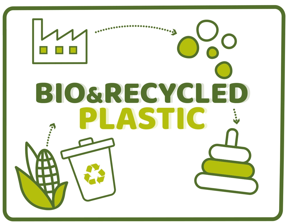 Linia Chicco Eco+ kładzie nacisk na zrównoważony rozwój. Gryzak wykonano w 50% z roślinnego bioplastiku bez dodanych szkodliwych barwników i jest bez BPA, PVC i ftalanów. Opakowanie jest w pełni nadające się do recyklingu. Wyprodukowano we Włoszech z naciskiem na jakość i bezpieczeństwo.