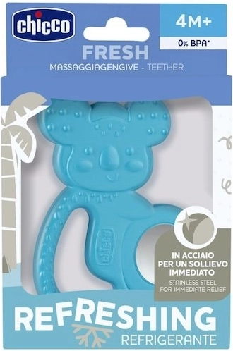 Przynieś ulgę dziąsłom swojego maluszka dzięki gryzakowi CHICCO Fresh Koala. Dzięki możliwości schładzania zapewnia natychmiastową ulgę podczas wyrzynania się ząbków, jest wykonany w 100% z miękkiego silikonu i pomaga także rozwijać umiejętności motoryczne. Nie zawiera BPA i jest odpowiedni dla dzieci od 4 miesięcy.