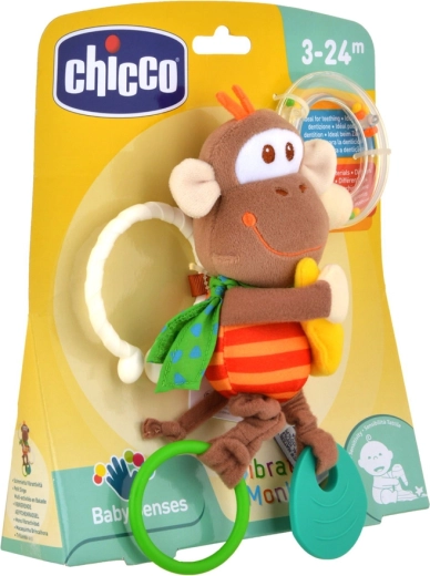 Wibrująca małpka CHICCO to idealny towarzysz na co dzień i w podróży. Praktyczny klips umożliwia szybkie i bezpieczne przypięcie do wózka, łóżeczka, fotelika samochodowego czy torby, dzięki czemu Twoje dziecko ma ulubioną zabawkę zawsze pod ręką. Po pociągnięciu za kółeczko aktywują się delikatne wibracje, które pobudzają ciekawość i stymulują zmysły.