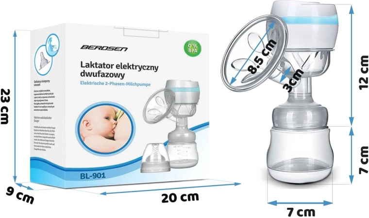 Laktator Berdsen został zaprojektowany z myślą o maksymalnym komforcie i skuteczności. Dwie fazy – stymulacja i głębokie ssanie – naśladują naturalny proces karmienia piersią i pomagają uruchomić oraz utrzymać laktację. Miękka silikonowa wkładka masująca delikatnie przylega i zwiększa komfort bez bolesnego ucisku.