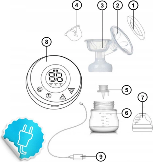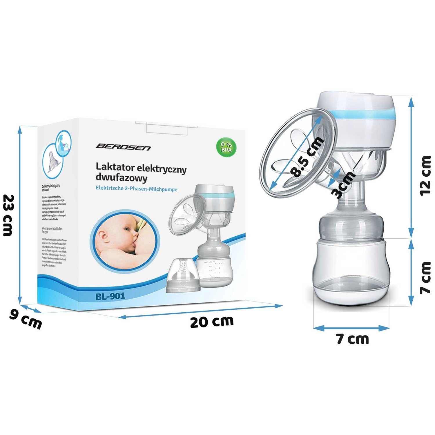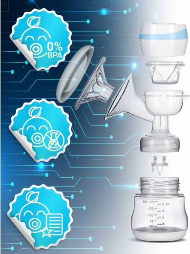 Dzięki cichej pracy, bezprzewodowemu działaniu oraz ładowaniu przez USB jest idealny w domu i w podróży. Duży wyświetlacz LCD ułatwia podgląd trybów, poziomów mocy oraz stanu baterii. Wszystkie elementy mające kontakt z mlekiem są bez BPA i łatwo się rozkładają do dokładnego czyszczenia.