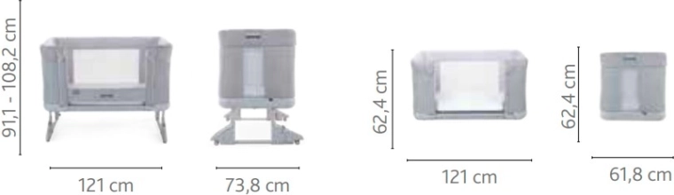 Regulacja wysokości w 11 poziomach oraz możliwość niezależnej regulacji lewej i prawej nogi pomagają przy refluksie przez delikatne uniesienie główki. Cztery kółka z hamulcem ułatwiają manewrowanie po mieszkaniu, a składane nogi pozwalają na dopasowanie do łóżek ze schowkiem. W zestawie znajduje się wygodny materac oraz zdejmowane tkaniny nadające się do prania w 40 °C.