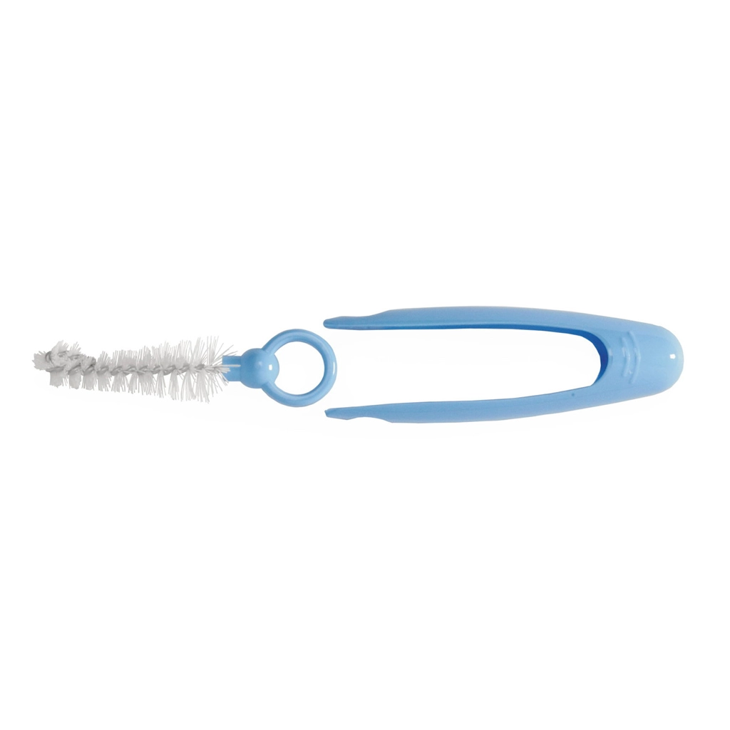 W zestawie znajduje się szczotka do butelek i smoczków oraz praktyczne szczypczyki do higienicznego obchodzenia się ze sterylnymi elementami bez dotykania ich rękami.