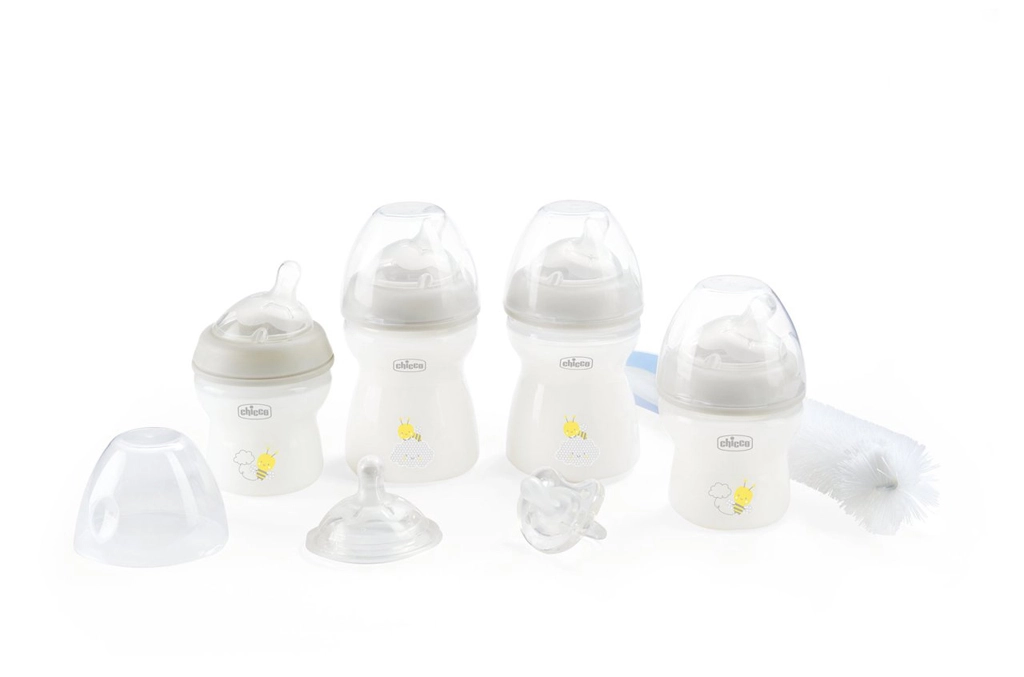 Kompletny zestaw prezentowy na pierwsze miesiące maluszka z butelkami CHICCO Natural Feeling i akcesoriami ułatwiającymi karmienie oraz ukojenie. Zawiera 4 butelki w różnych rozmiarach, zapasowe smoczki, smoczek całosilikonowy Physio Soft oraz szczotkę do butelek i smoczków. Smoczki z przeciwkolkowym zaworkiem wspierają naturalne przystawianie i komfortowe karmienie od urodzenia.