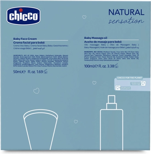 Podaruj swojemu maluszkowi najdelikatniejszą codzienną pielęgnację. Zestaw CHICCO Natural Sensation We Are Two inspirowany jest naturalną równowagą skóry dziecka i oferuje produkty opracowane we współpracy z pediatrami i dermatologami. Olejek do masażu pozostawia skórę jedwabiście gładką i elastyczną, a krem do twarzy chroni przed niekorzystnymi warunkami pogodowymi i podrażnieniami.
