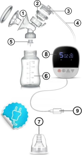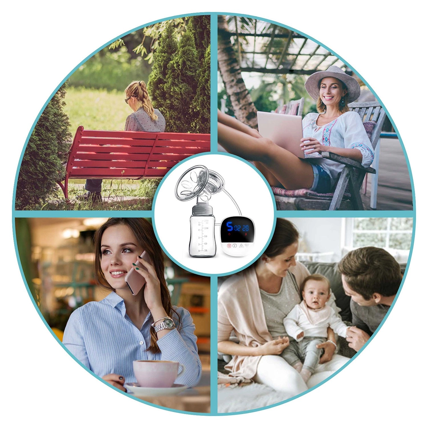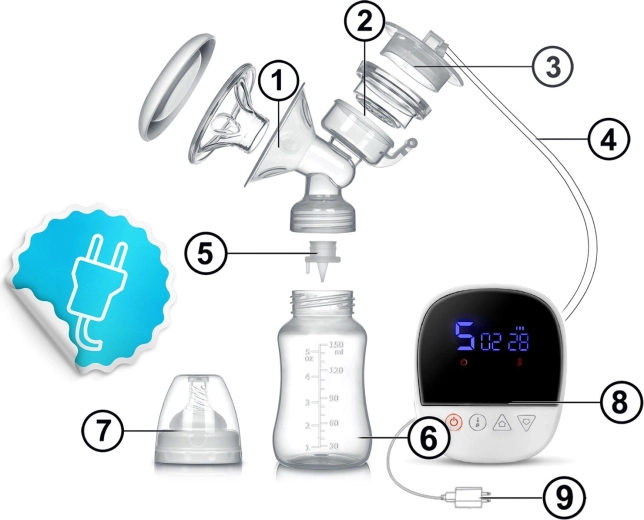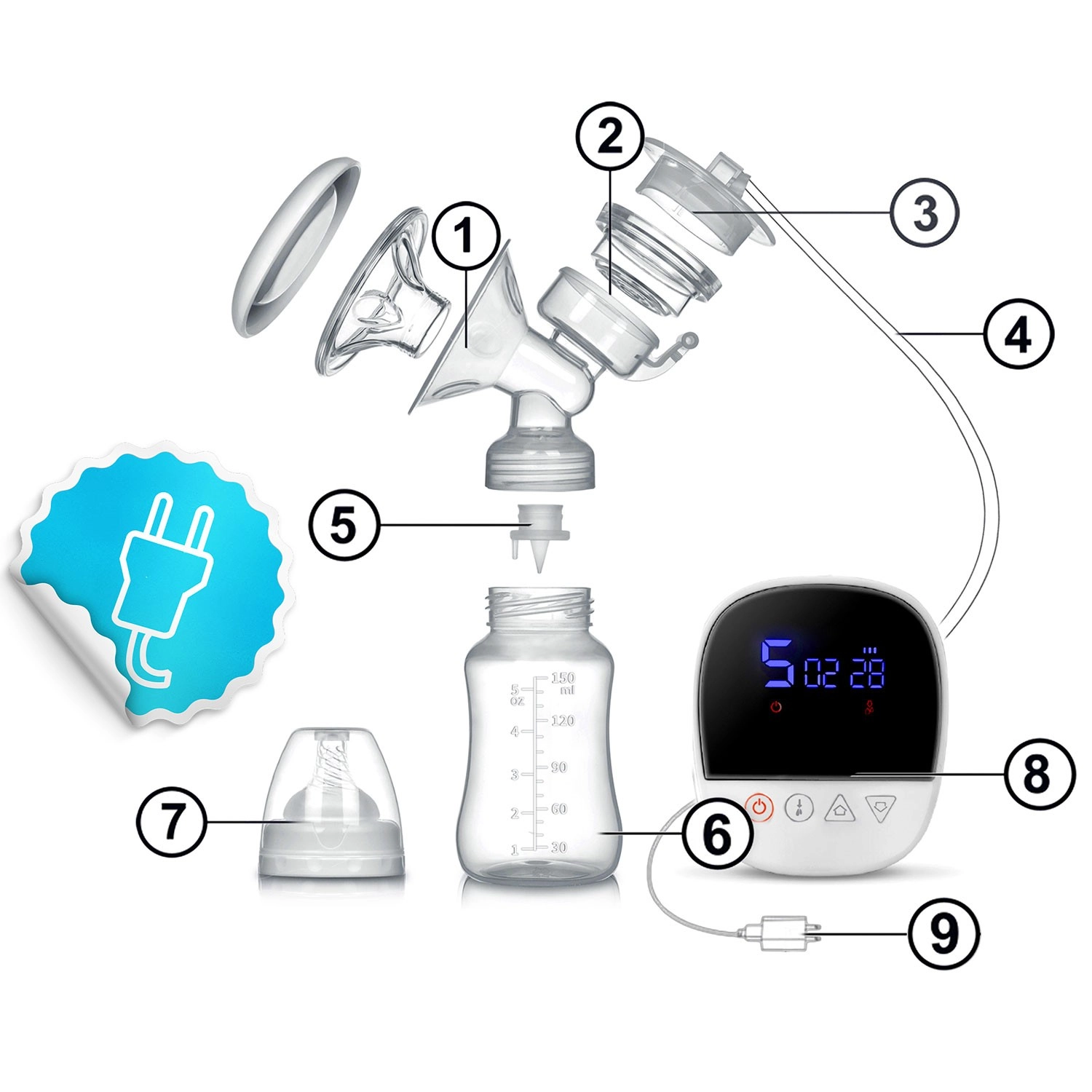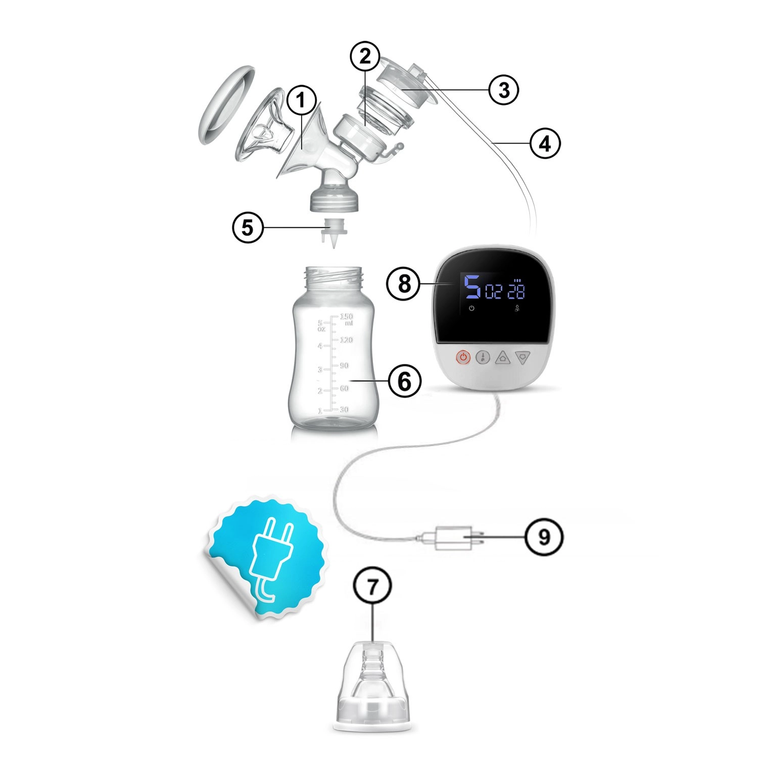 Urządzenie jest bezprzewodowe z wydajną baterią, bardzo ciche i idealne w podróży. Intuicyjny panel z wyświetlaczem pokazuje czas, tryb, poziom ssania i stan baterii. Wszystkie elementy mające kontakt z mlekiem są bez BPA i spełniają normy CE, LFGB, RoHS, REACH. Szybki demontaż i czyszczenie ułatwiają codzienną higienę i utrzymanie wysokiego standardu bezpieczeństwa dla Ciebie i Twojego maluszka.