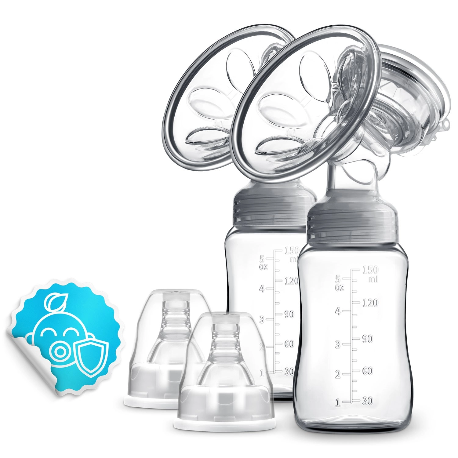 - Praktyczne akcesoria w zestawie: 2 butelki 150 ml, 2 smoczki, 2 woreczki na mleko