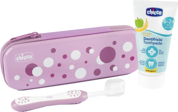 Zestaw Chicco Always Smiling został zaprojektowany tak, aby od pierwszego mlecznego ząbka zapewniać dzieciom delikatną i bezpieczną pielęgnację. Ekstra miękkie włosie chroni wrażliwe dziąsła, a nieabrazyjna pasta z lubianym smakiem banana i jabłka wspiera regularne szczotkowanie bez oporu. Praktyczne etui utrzymuje wszystko w czystości i gotowości do podróży czy nocowania u dziadków.