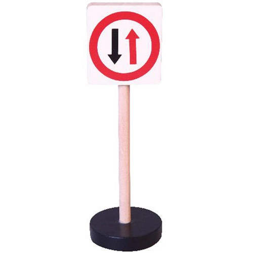 - Drewniany znak drogowy – pierwszeństwo dla nadjeżdżających z przeciwka