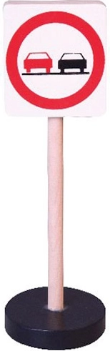 Babu drewniany znak drogowy – zakaz wyprzedzania