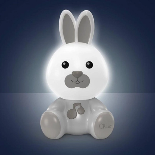 Stwórz swojemu maluszkowi spokojną atmosferę do zasypiania z uroczą nocną lampką w kształcie króliczka od marki CHICCO. Lampka włącza się po prostu po wstrząśnięciu i oferuje do 10 minut kojących melodii (muzyka klasyczna i New Age). Jest przenośna, służy jako delikatne światło orientacyjne podczas zabawy i snu, a dzięki przyciskowi z nutką łatwo zmienisz melodię.