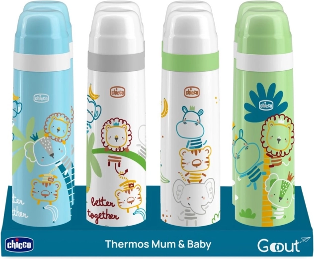 Stylowy zielony termos CHICCO z wesołymi obrazkami łączy funkcjonalność i bezpieczeństwo. Dzięki wysokiej jakości stali nierdzewnej jest odporny na uderzenia i jednocześnie łatwy w utrzymaniu czystości. Praktyczne wieczko działa jako kubek, więc napój łatwo nalejesz gdziekolwiek w drodze.