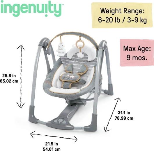 Huśtawkę łatwo złożysz do kompaktowych rozmiarów do przenoszenia lub przechowywania, a dzięki stabilnej konstrukcji wygodnie zabierzesz ją w podróż. Wystarczą 4 baterie typu D, aby cieszyć się spokojnymi chwilami w domu i poza nim.