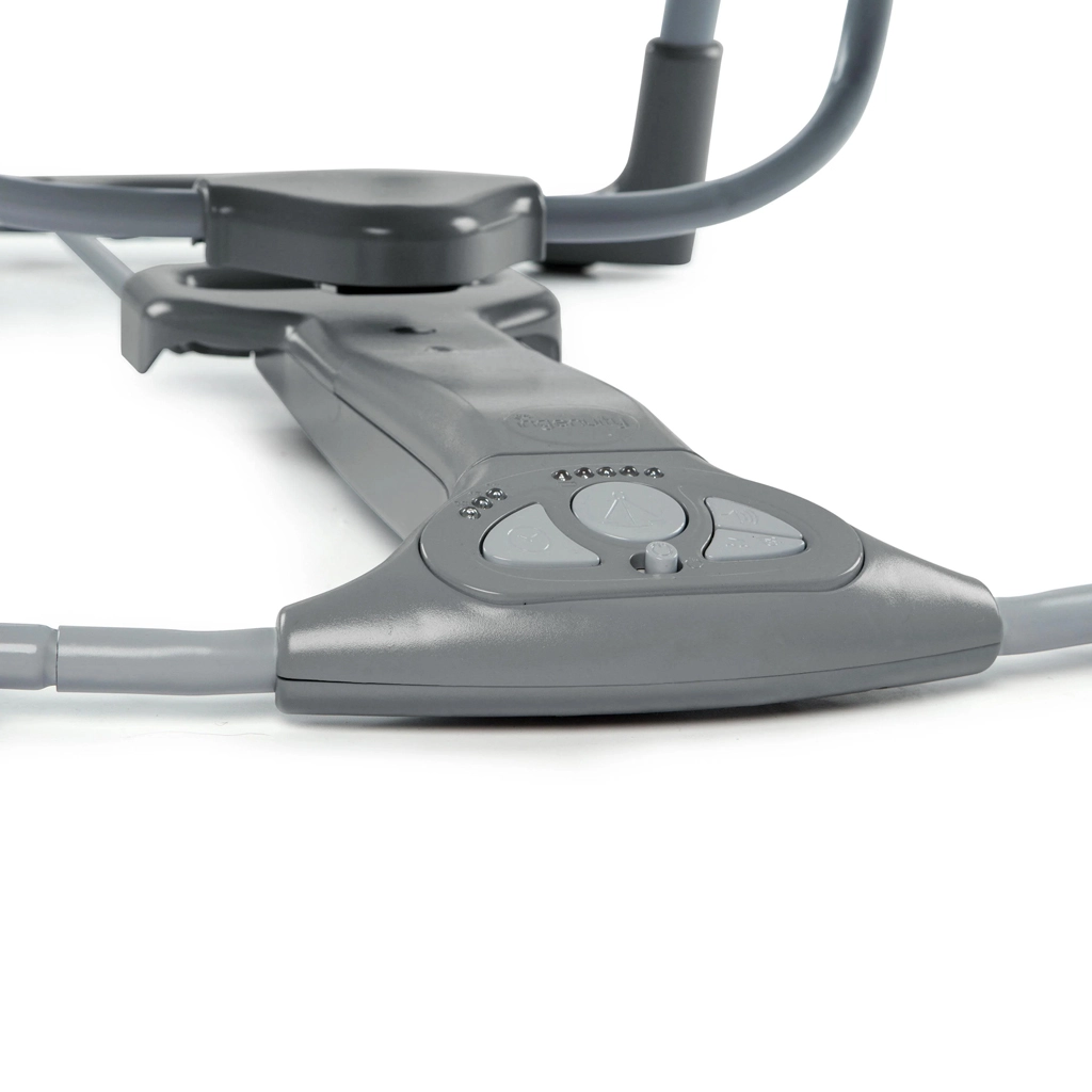 Delikatne, luksusowe materiały z możliwym do prania pokrowcem i wyjmowaną poduszką pod głowę zapewniają doskonałe podparcie noworodkom. Miękkie poduszki na pasach naramiennych chronią wrażliwą skórę, a pluszowe zabawki na pałąku (miś i chmurka) wspierają rozwój sensoryczny. Praktyczny timer 30/45/60 minut oraz automatyczne wyłączenie po 90 minutach zwiększają bezpieczeństwo i wygodę użytkowania.