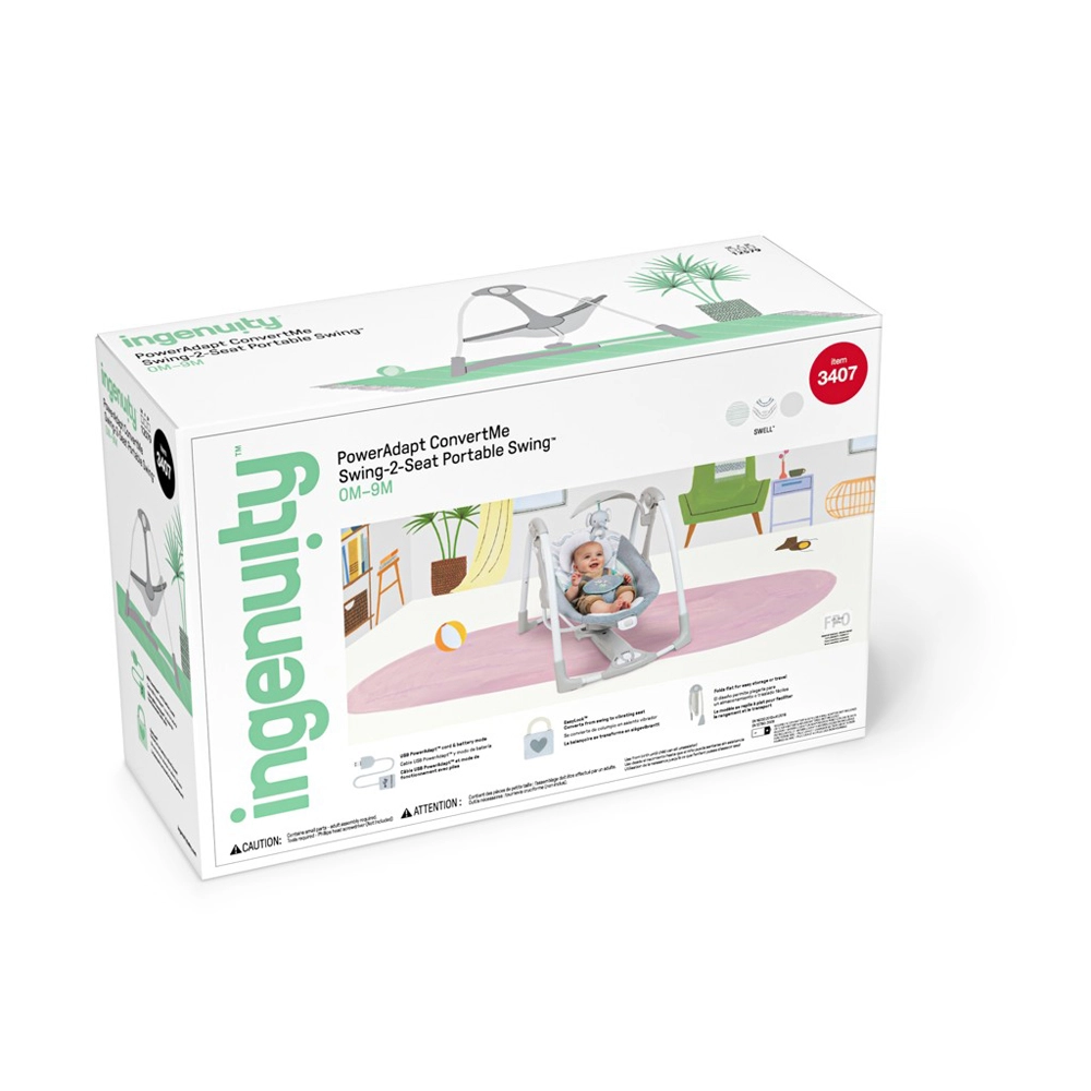 INGENUITY Swell 2w1 w mgnieniu oka zmienia się z kojącej huśtawki w stacjonarny leżaczek. Neutralny, elegancki design z subtelnymi haftami doskonale wpasuje się w każde wnętrze i ucieszy rodziców oraz dzieci. Pracę zapewnia technologia WhisperQuiet dla maksymalnego spokoju, natomiast regulowany timer kołysania (30/45/60 min) i automatyczne wyłączenie po 90 minutach oszczędzają energię i Twoją uwagę.