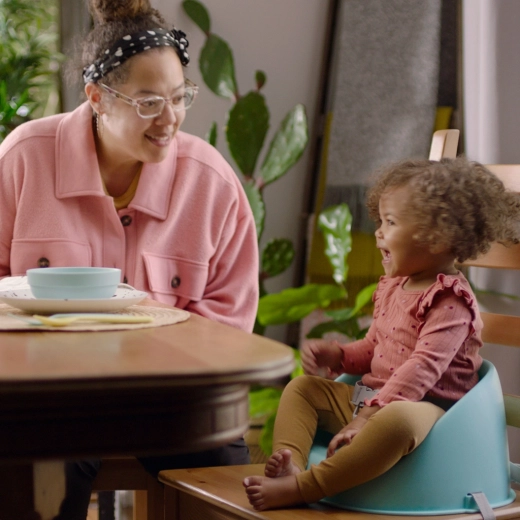 Regulowany 3‑punktowy pas bezpieczeństwa utrzymuje dziecko w wygodnej i stabilnej pozycji podczas jedzenia i zabawy przy stole.