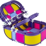 Elementy zestawu są w różnych kolorach jak fioletowy, żółty, różowy i niebieski, co pobudza dziecięcą wyobraźnię.