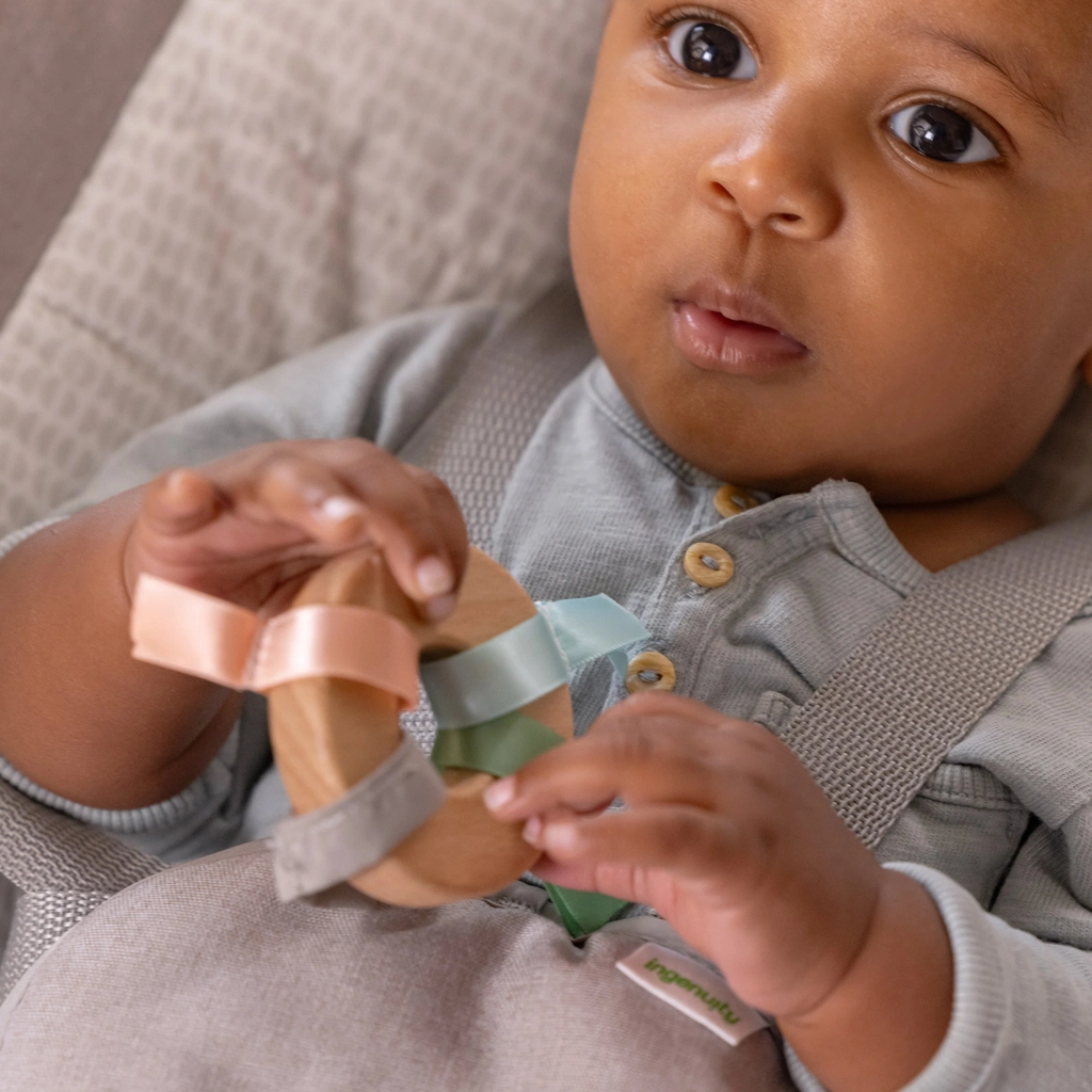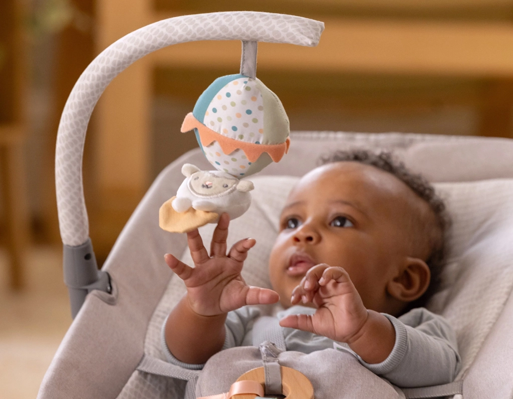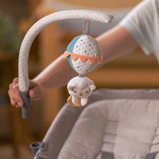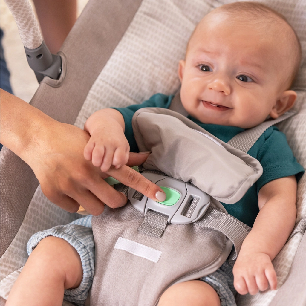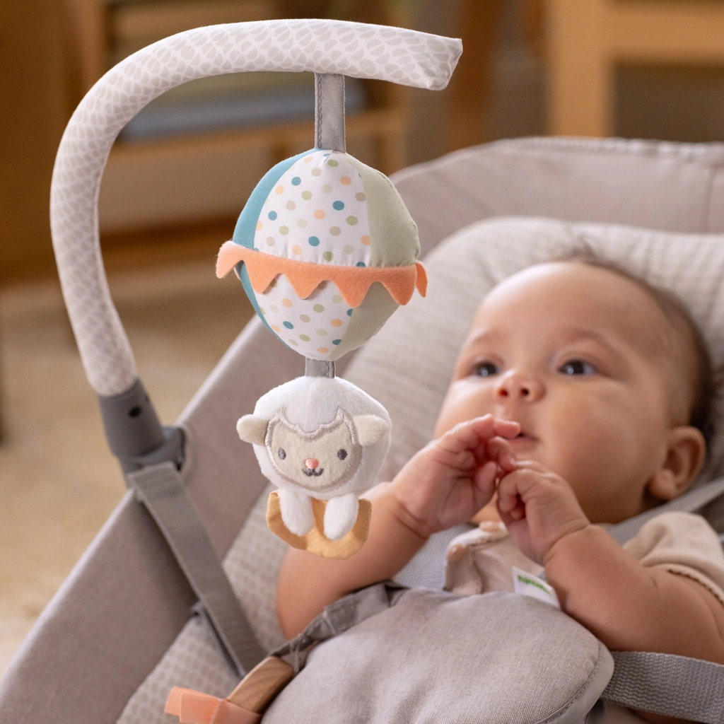 Ukoisz swoje dziecko delikatnym kołysaniem, wibracjami i melodiami w nowoczesnym leżaczku Ingenuity Soulful Skies. Za pomocą pilota łatwo ustawisz 2 prędkości kołysania, wibracje oraz ciche melodie. Dwie pozycje nachylenia zapewnią maksymalny komfort, a odpinany pałąk z pluszowym balonem i drewnianym kółkiem wesprze rozwój zmysłów. Leżaczek ma miękkie tkaniny, łatwo się składa i dzięki torbie podróżnej zabierzesz go wszędzie.