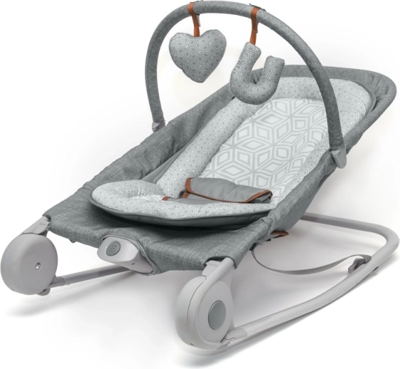 Praktyczne detale doceni każdy rodzic: składanie całkowicie na płasko dla łatwego przechowywania i podróżowania, odpinany pałąk z dwiema miękkimi zabawkami dla stymulacji zmysłów oraz łatwa pielęgnacja dzięki pokrowcowi siedziska przeznaczonemu do prania w pralce. Nowoczesny, neutralny design świetnie wpasuje się w każde wnętrze.
