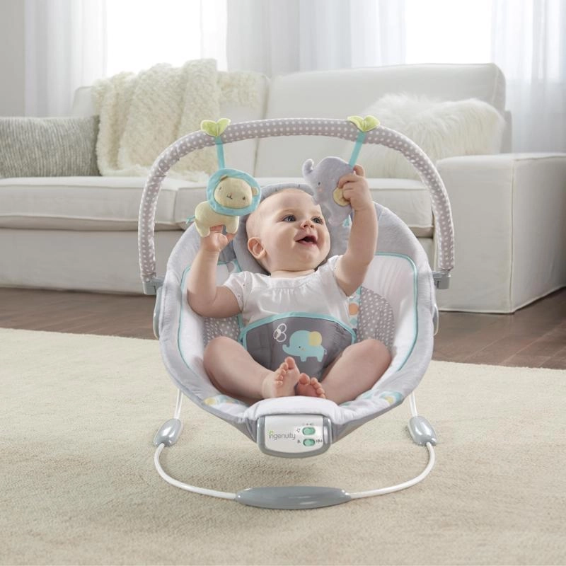 Uspokój swoje dziecko w komfortowych warunkach dzięki leżaczkowi Ingenuity Morrison, który oferuje delikatne wibracje, 7 kojących melodii z automatycznym wyłączeniem po 15 minutach oraz miękki, pluszowy pokrowiec dla maksymalnej wygody. Dzięki odpinanemu pałąkowi z dwiema zabawkami, 3-punktowemu pasowi i antypoślizgowym nóżkom jest bezpieczny, praktyczny i idealny od urodzenia do 9 kg.