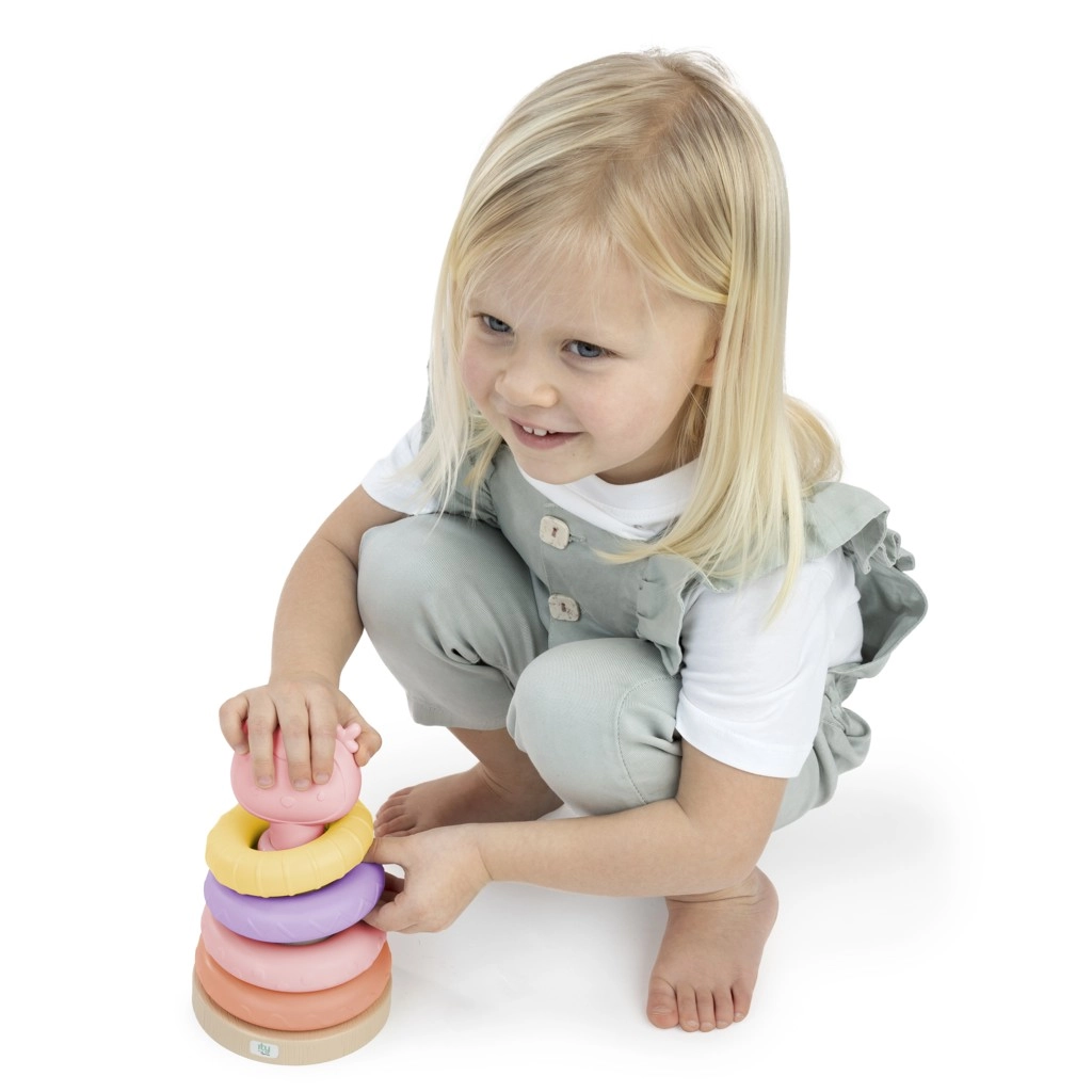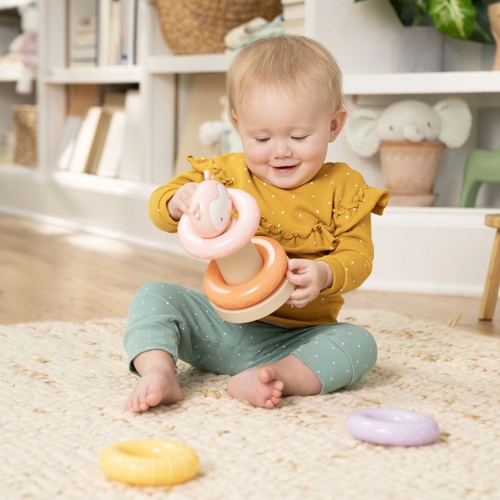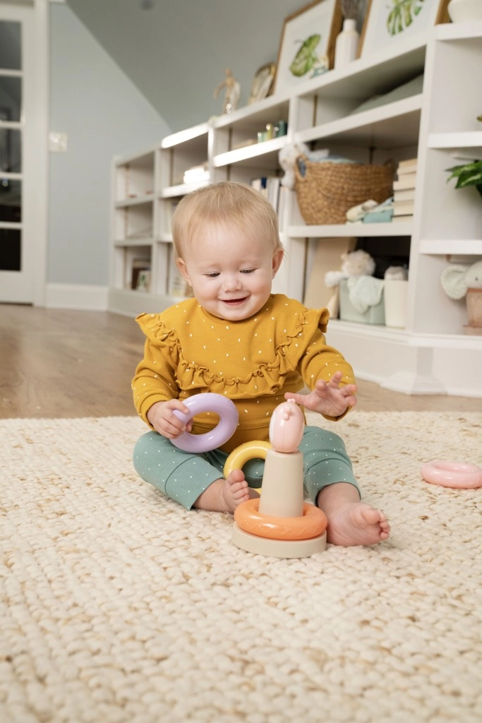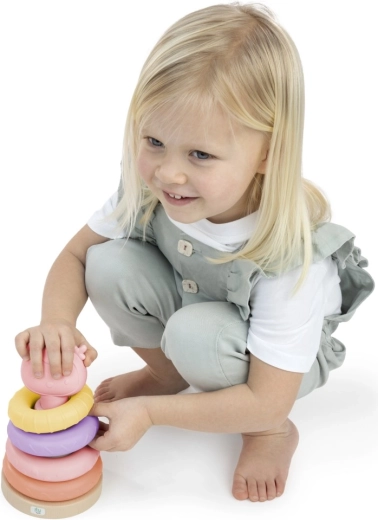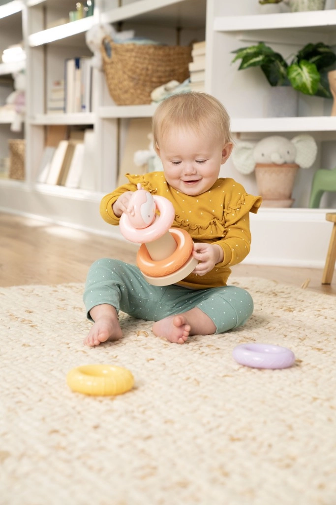 Układanie i zdejmowanie kółek ćwiczy precyzję ruchów, wzmacnia koordynację i wspiera naturalny rozwój umiejętności już od 6 miesięcy.