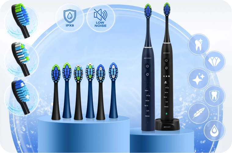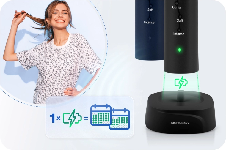 Długi czas pracy i wygodne ładowanie: zintegrowany akumulator (ok. 800 mAh) działa do 50 dni na jednym ładowaniu. Indukcyjna baza ładująca USB zapewnia bezpieczne i proste uzupełnianie energii. Konstrukcja z IPX8 chroni szczoteczkę przed zachlapaniem i zanurzeniem, dzięki czemu doskonale sprawdzi się w łazience i w podróży.