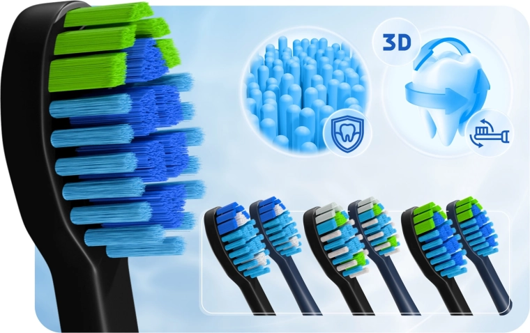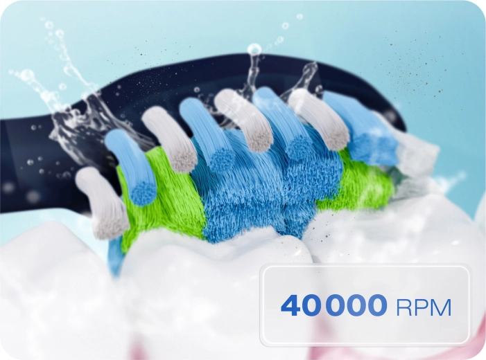 Siła technologii sonicznej usuwa płytkę nazębną i przebarwienia szybko i delikatnie. Główki z miękkim włosiem dopasowują się do kształtu zębów, a tylna strona ułatwia czyszczenie języka, zapewniając długotrwałą świeżość oddechu. Wydajny silnik generuje do 40 000 wibracji na minutę, a inteligentny timer pomaga myć zęby prawidłowo i skutecznie każdego dnia.