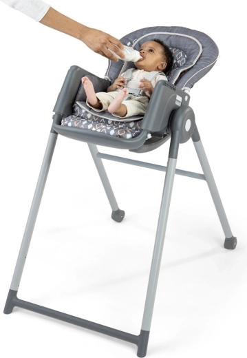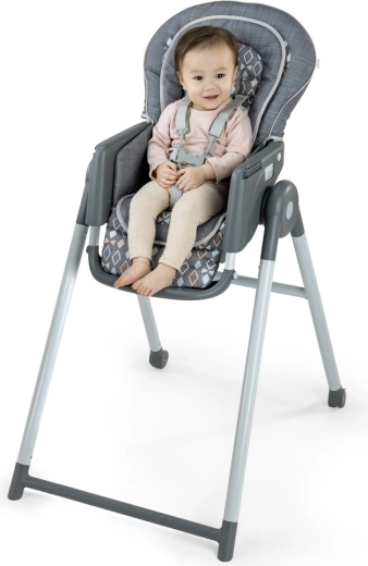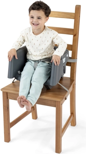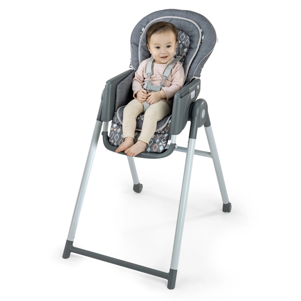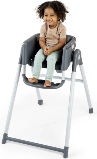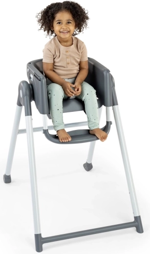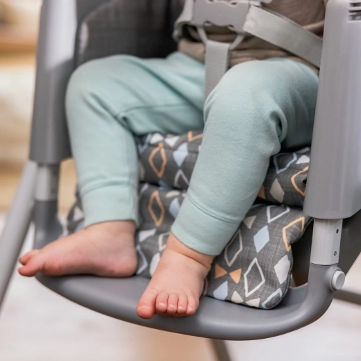 Siedzenie wspierające prawidłową postawę ciała, regulowany podnóżek i miękkie wyściełanie pomagają skupić się na jedzeniu i wspierają trawienie.