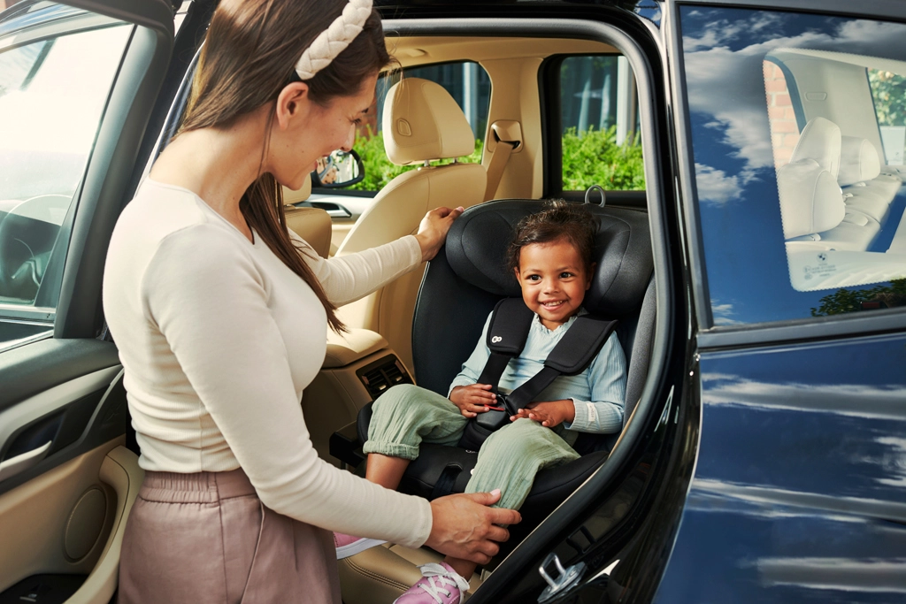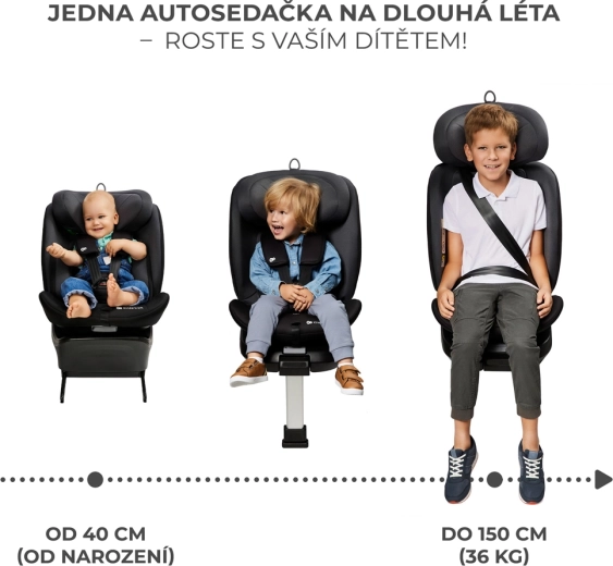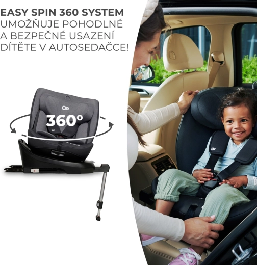 Mechanizm obrotowy pozwala w mgnieniu oka obrócić fotelik w swoją stronę, bezpiecznie zapiąć dziecko i przełączać między RWF a FWF bez wyjmowania z auta.
