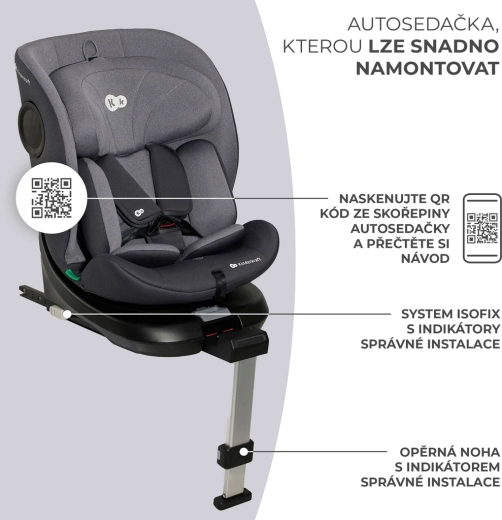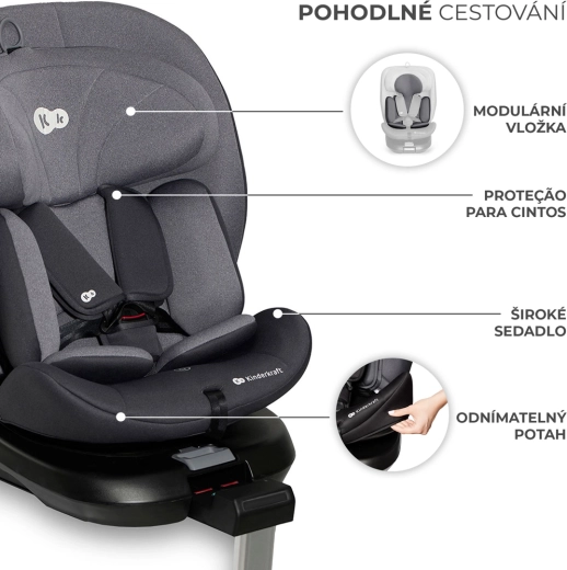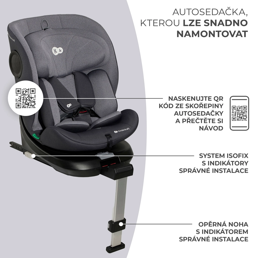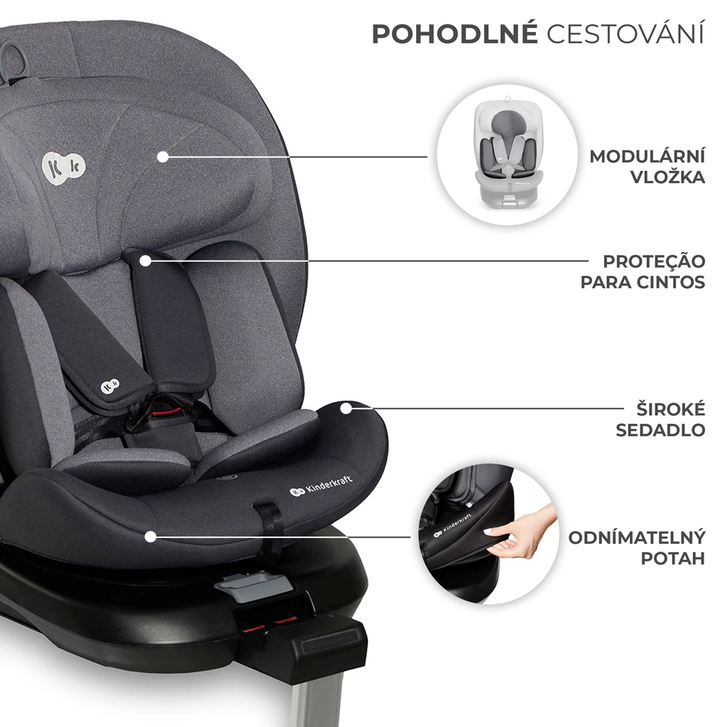Kinderkraft fotelik samochodowy I-360 i-Size 40–150 cm, szary