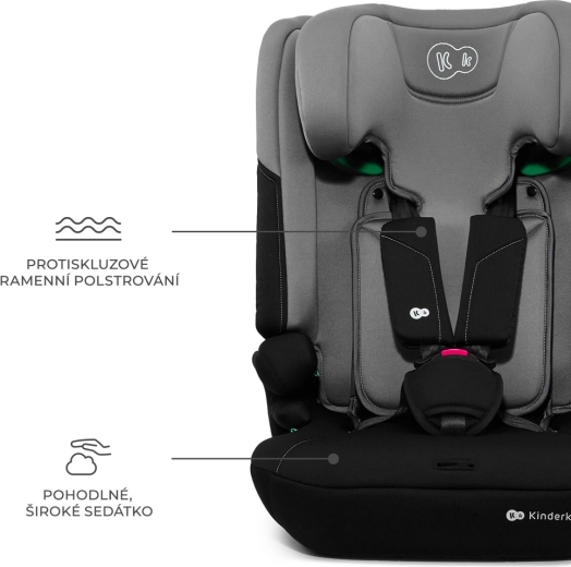 - 5-punktowe pasy – z miękkimi osłonkami i warstwą antypoślizgową na pasach barkowych.