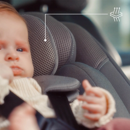 Systemy ochrony H-GUARD (wzmocniony, trójwarstwowy zagłówek z pianką memory) i SIDE PROTECT skutecznie absorbują energię uderzenia. Reclining System oferuje 4 pozycje odchylenia, natomiast wentylowana skorupa i oddychająca tapicerka ograniczają pocenie w upały. EASY GROW umożliwia jednoręczną regulację zagłówka i pasów (6 pozycji). W zestawie wkładka dla noworodka do 60 cm dla prawidłowego ułożenia maluszka.