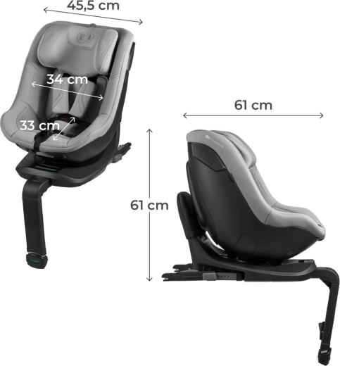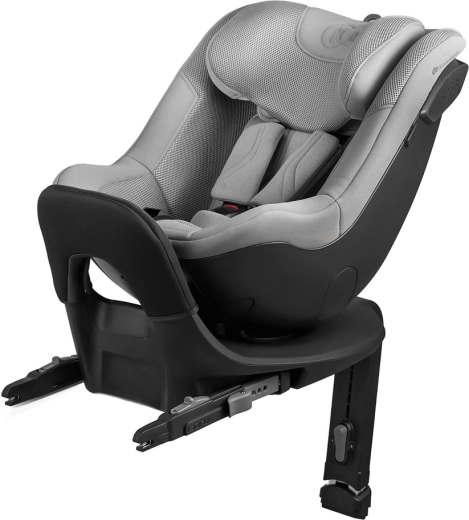 Obrotowa baza pozwala w sekundę przełączać między RWF/FWF i wygodnie zapiąć dziecko bez skomplikowanej manipulacji.
