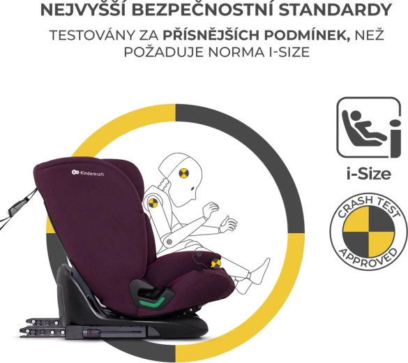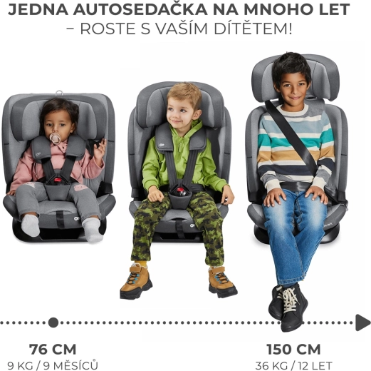 Fotelik samochodowy Kinderkraft Oneto3 i-Size rośnie z Twoim dzieckiem od 76 do 150 cm. Spełnia najnowszy standard R129 i-Size i nawiązuje do nagradzanego modelu ONETO3 (ADAC). Dzięki ISOFIX i TOP TETHER zamontujesz go szybko i prawidłowo – wskaźniki montażu pomagają uniknąć błędów. Starsze dzieci można przypiąć 3-punktowym pasem pojazdu, z możliwością używania także bez ISOFIX.