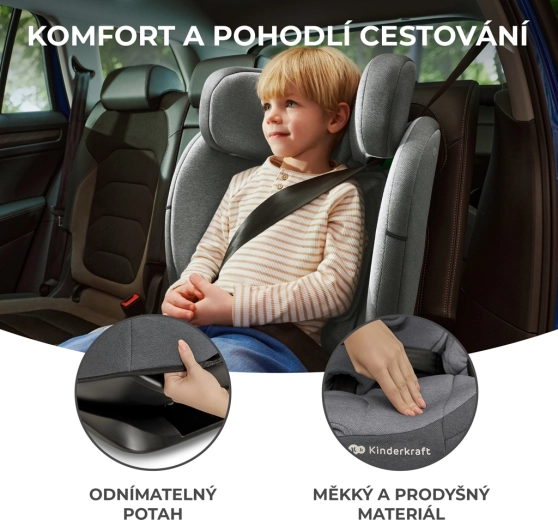 Bezpieczeństwo zgodne z normą R129 i-Size, łatwy montaż przez ISOFIX i TOP TETHER oraz maksymalny komfort od 15 miesięcy do ok. 12 lat (76–150 cm). Fotelik samochodowy Kinderkraft Oneto3 i-Size oferuje zwiększoną ochronę dzięki SIDE PROTECT SYSTEM i 3-warstwowemu zagłówkowi H-GUARD z pianką z pamięcią kształtu. Pięć pozycji RECLINING, EASY GROW SYSTEM z 18 poziomami regulacji zagłówka oraz wyjmowana wkładka zapewnią wygodę nawet podczas długich podróży.