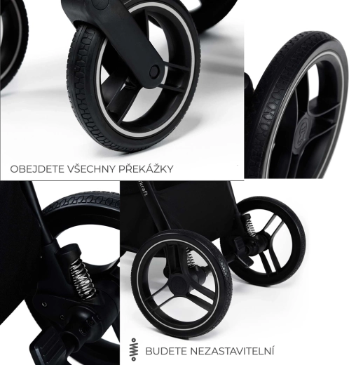 Rodzice docenią intuicyjny hamulec STOP & RIDE, magnetyczną klamrę do szybkiego zapinania, zdejmowane do prania pokrycia oraz praktyczne składanie z funkcjami SELF STANDING i AUTO LOCK dla łatwego przenoszenia i przechowywania. Duży kosz udźwignie do 5 kg, a dzięki uniwersalnym adapterom do fotelika w kilka chwil stworzysz praktyczny travel system. W komplecie bogate akcesoria: folia przeciwdeszczowa, moskitiera, osłonki na nóżki, uchwyt na napój, torba do przewijania i więcej.