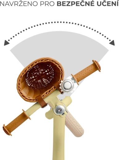 Duże gumowe koła z łożyskami doskonale tłumią nierówności i zapewniają płynną jazdę po chodniku i leśnej ścieżce. Regulowane siodełko (33,5–41,5 cm) dopasowuje się do szybko rosnących dzieci, a nisko osadzona rama ułatwia wsiadanie także mniejszym rowerzystom. Ograniczenie kąta skrętu kierownicy chroni dziecko przed nagłym, niekontrolowanym skrętem, a antypoślizgowe gumowe rączki gwarantują pewny chwyt.