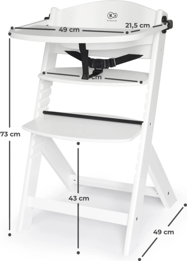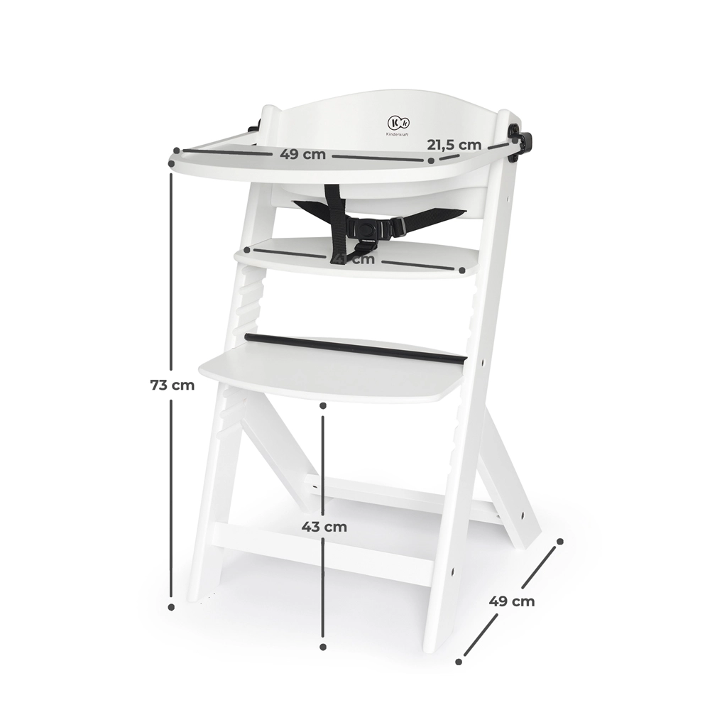 Kinderkraft Enock to ponadczasowe krzesełko, które łatwo przekształcisz w ergonomiczną niższą wersję dla starszego dziecka. Dzięki pięciostopniowej regulacji oparcia, regulowanemu podnóżkowi i szerokiemu siedzisku idealnie dopasowuje się do wieku i wzrostu dziecka. Lity buk i wysokiej jakości sklejka gwarantują wyjątkową stabilność i długą żywotność.