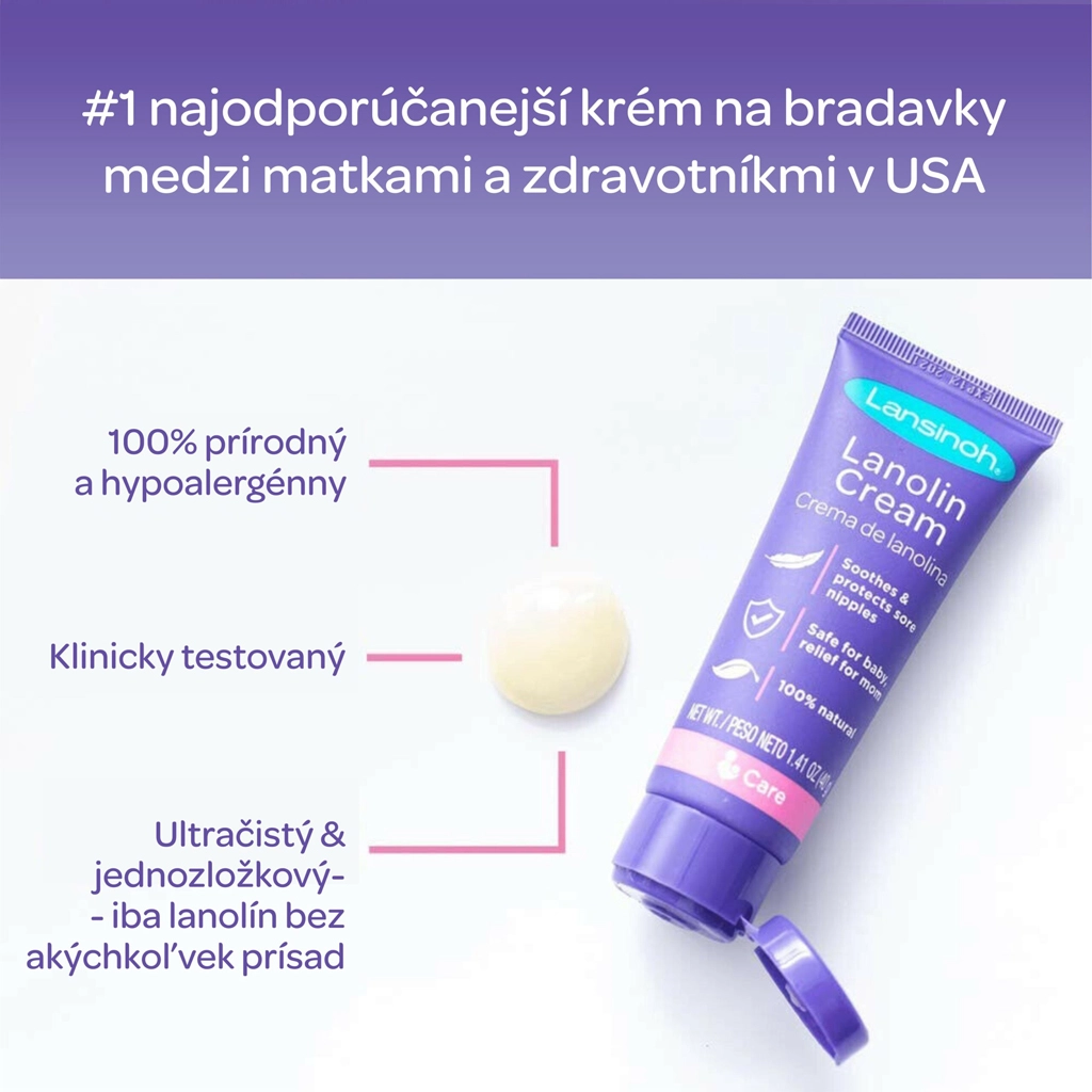 Ulżyj wrażliwym i popękanym brodawkom podczas karmienia piersią dzięki kremowi Lansinoh HPA lanolin. Ten w 100% naturalny, hipoalergiczny i bezpieczny dla dziecka krem natychmiast koi, chroni i wspiera naturalną regenerację skóry – bez konieczności spłukiwania przed karmieniem.