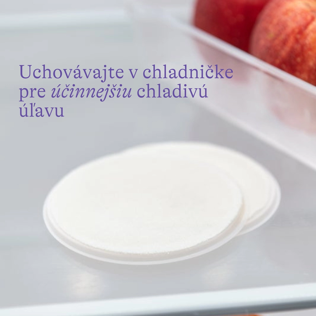 Wkładki mają miękki, materiałowy podkład, który chroni przed otarciami i podrażnieniami, a jednocześnie ściśle przylegają, aby pokryć całą powierzchnię brodawki i otoczki. Żel chłonny pomaga również zapobiegać wyciekaniu mleka. Dla intensywniejszego chłodzenia można je przechowywać w lodówce. Praktyczny pojemnik ułatwia higieniczne przechowywanie w domu i w podróży.