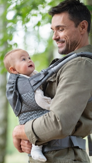 Nosidełko umożliwia 3 pozycje noszenia – na brzuchu i na plecach – w zależności od etapu rozwoju dziecka i preferencji rodzica. Dzięki naturalnej bawełnie (ewentualnie mieszance bawełna/poliester) materiał jest przyjazny dla delikatnej skóry dziecka i łatwy w pielęgnacji. Nie brakuje kieszeni na telefon, klucze lub kartę, idealnej na szybkie wyjścia. W zestawie jest także program Lionelo Assistance z dożywotnią gwarancją i serwisem door-to-door.