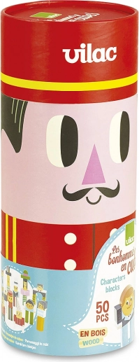 Drewniane klocki VILAC z ilustracjami postaci ludzkich to świetny wybór dla twórczych dzieci od 3 lat. Elementy w kształcie głów, tułowi, nóg i czapek można dowolnie łączyć, tworząc nieskończoną liczbę zabawnych i oryginalnych postaci. Zabawa naturalnie rozwija kreatywność, koordynację ręka–oko oraz małą motorykę.